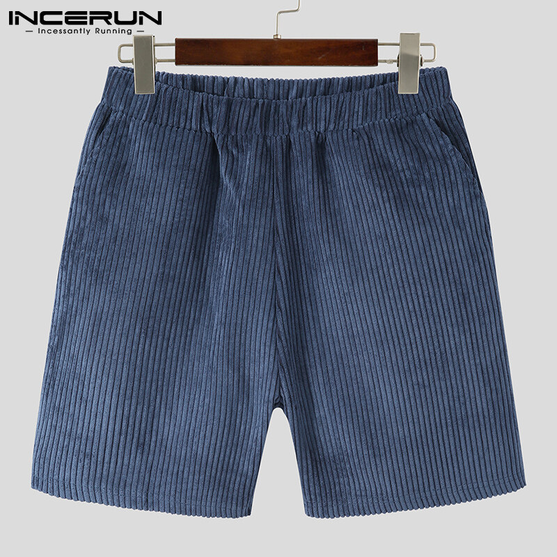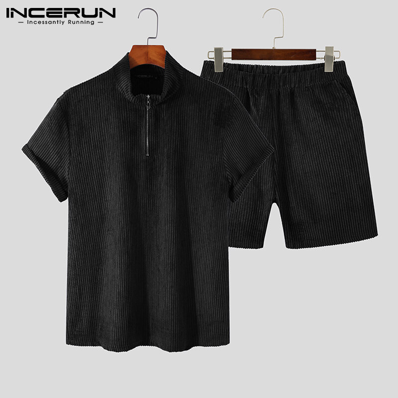 INCERUN Men Short Sleeve Korean Style Casual Suits Button Shirts Elastic Waist Short Sets (Korean Style)